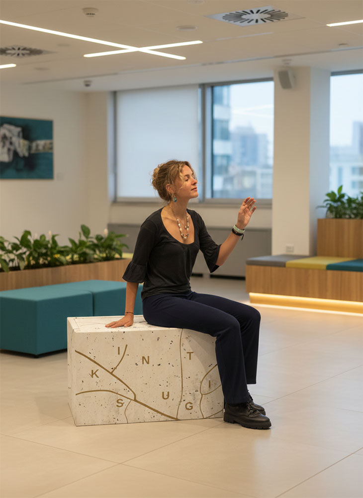 Every space has its own energy, made up of sounds, materials, surfaces, and human presence. A multisensory experience arises when these elements interact. With Soundpotai, sound isn't confined to the air: it passes through the material and is also perceived through the body. The surface vibrates, the environment resonates, posture changes.