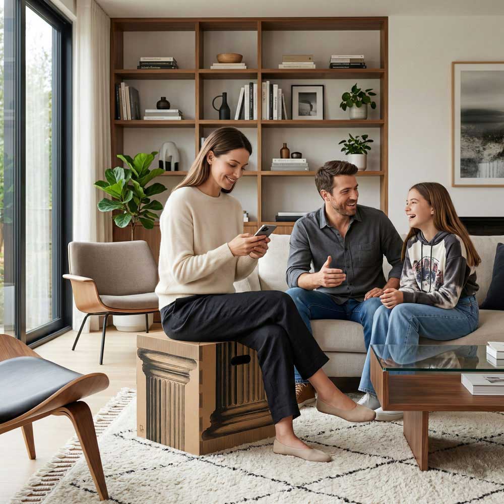 At home, sound often fills the silence. With a resonant surface, it can become a moment of reflection. The vibration invites you to slow down, breathe, and linger. It's not isolation, but presence. A different way of inhabiting your space, transforming listening into a conscious act.